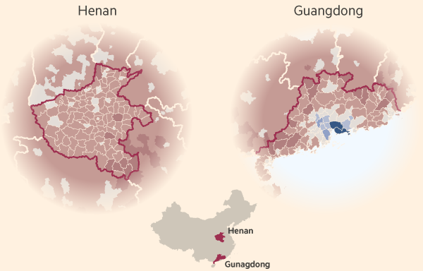 Example: Urban Attraction and Migration within China. Detail views.