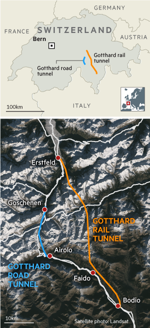 Example: Gotthard rail and road tunnel in the Swiss Alps.