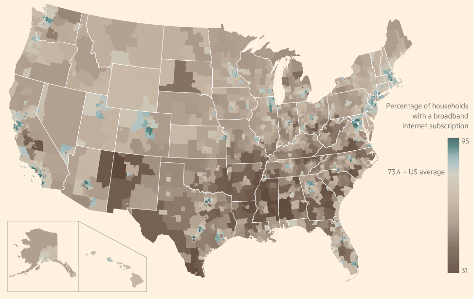 Example: Percentage of households with a broadband internet subscription in the US.